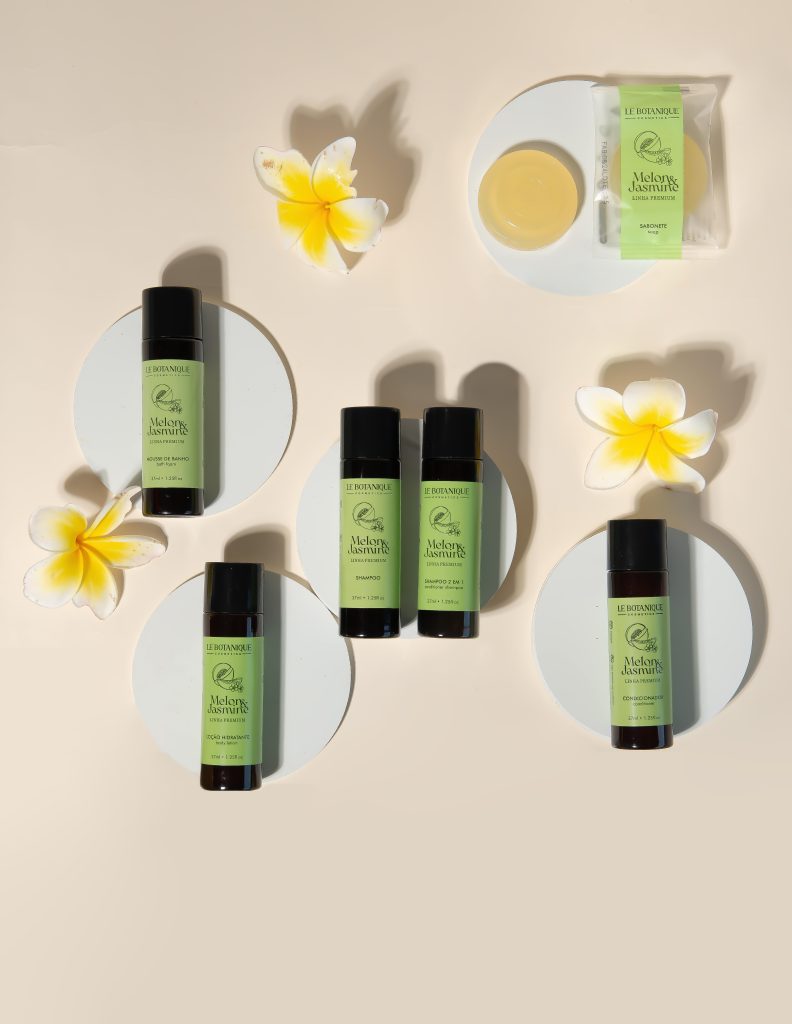 • A Estoril Cosméticos oferece uma linha completa de amenities de marca própria e personalizáveis, que podem ser adaptados para cada tipo de estadia.